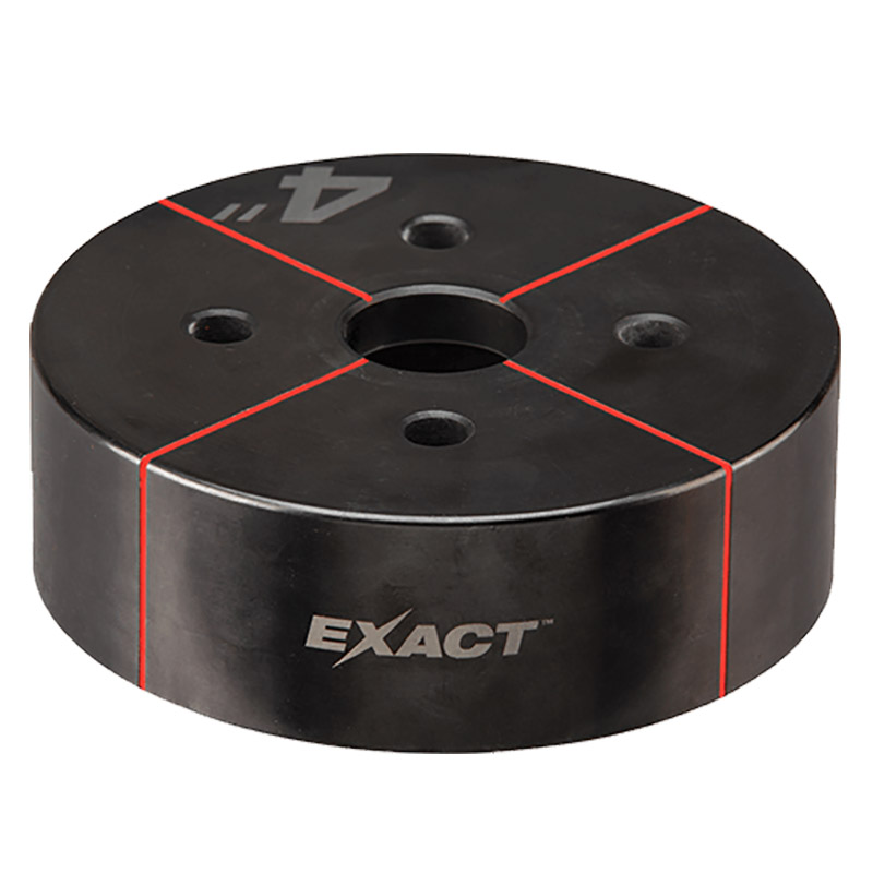 EXACT™ punches and dies have innovative features which bring value for the contractor. Heavy duty, they can punch holes in both mild and stainless steel material. Engraved crosshairs on the dies deliver clearest alignment with pre-drawn crosshairs. Both the tooth geometry of the punches, and slug removal ports on the dies, provide optimal slug removal. Large size ID markings on both the punches and dies permit easy punch and die selection. EXACT™ punches and dies do not require spacers.