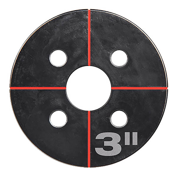 EXACT™ punches and dies have innovative features which bring value for the contractor. Heavy duty, they can punch holes in both mild and stainless steel material. Engraved crosshairs on the dies deliver clearest alignment with pre-drawn crosshairs. Both the tooth geometry of the punches, and slug removal ports on the dies, provide optimal slug removal. Large size ID markings on both the punches and dies permit easy punch and die selection. EXACT™ punches and dies do not require spacers.