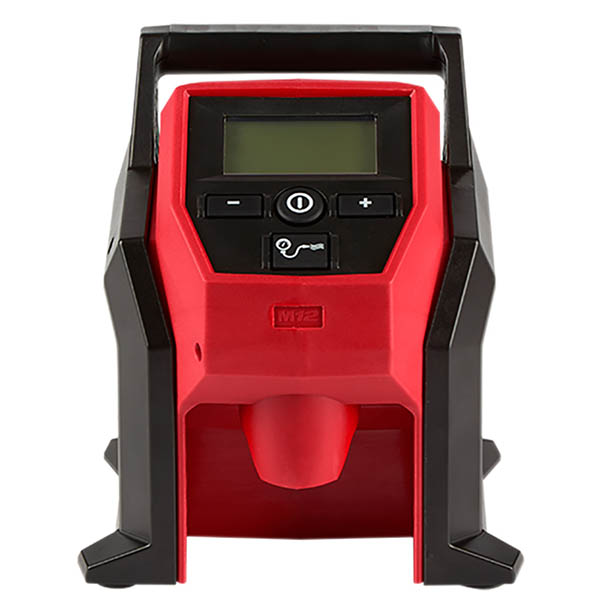 Fastest Cordless Tire Inflator. The Milwaukee M12 Compact Inflator delivers fast, accurate, easy inflation with the portability to take anywhere. With the capability to complete demanding applications like car, LT truck, and compact equipment tires, the M12 Compact Inflator gives users ultimate power and efficiency. Rated to deliver over 120PSI, The high efficiency motor and pump top-off car tires in under 1 minute. The TrueFill Auto shut-off technology delivers highly accurate pressure, protects from overfill, and automatically senses speed of fill to deliver precise shut-off at the desired PSI. Additionally, the unit includes a large easy to read back-lit LCD, anti-vibration feet, and 26” inch hose with an all brass Schrader chuck. |