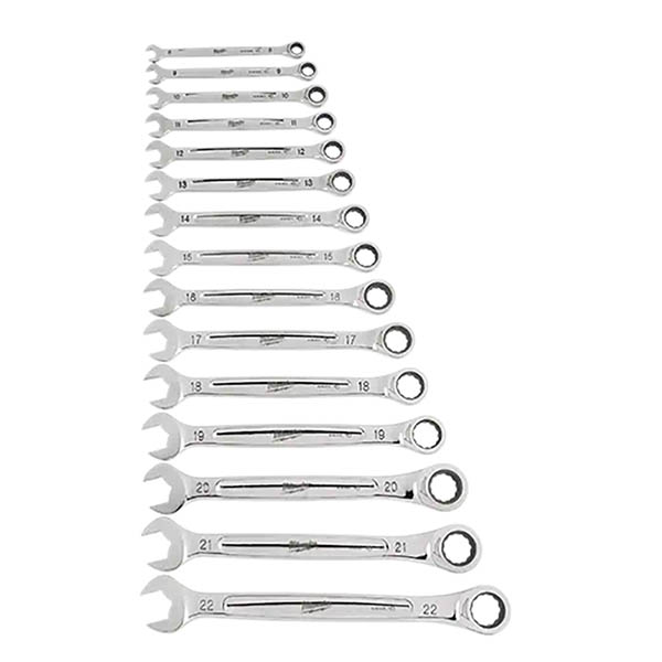 MAX BITE™ Open-End Grip improves the ratchet wrench's grip on nuts and bolts, offering 25% more torque than smooth-faced wrenches. Each combination wrench features a comfortable I-Beam handle design for improved ergonomics. Our ratcheting combination wrench set features ink-filled size labels for easy size identification, as well as quick distinction between SAE and metric sets. The 15 piece metric ratcheting combination wrench set comes in a tray designed for steel storage drawers, allowing for efficient storage with no wasted space. |