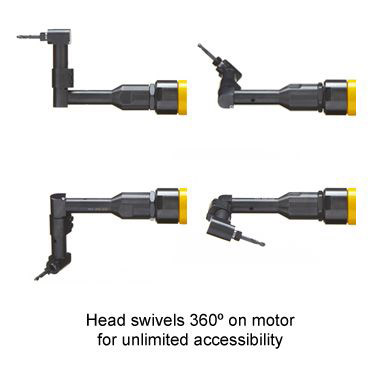 • Additionally the head swivels 360° on the motor for unlimited accessibility