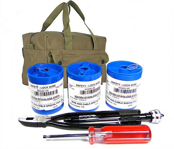 Really great kit that includes all you need for aircraft safety wiring... high quality and tote bag so you always have your safety wire stuff in one place.