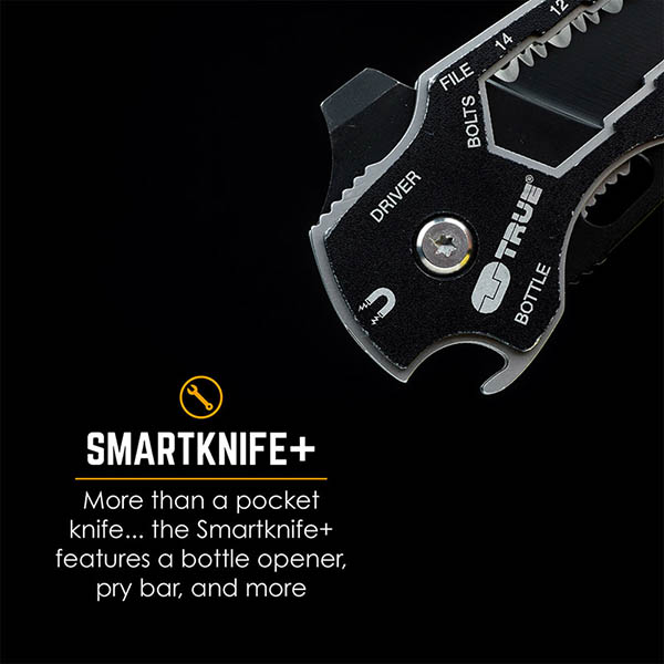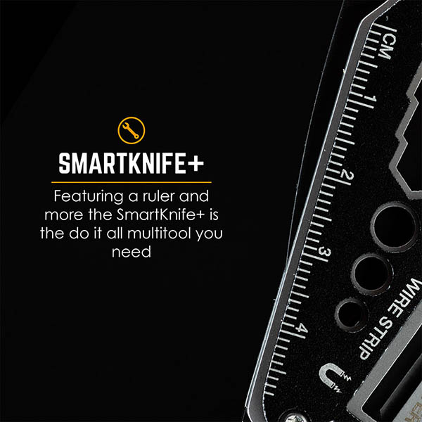The SmartKnife+ is a multi-tool wrapped around a super sharp 2.375” black oxidized pocket knife. The multi-tool handle features a small, medium and large flat driver, magnetic ¼” bit driver and holder, file, wire strippers, rulers, wrenches, pry bar, pocket clip and bottle opener, making this the smartest knife you can put in your pocket. |