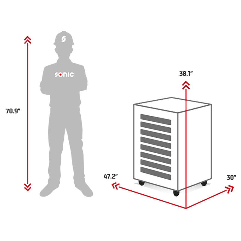 | The Sonic NEXT S13 toolbox is the solution of choice for technicians looking for advanced to expert toolsets. The NEXT S13 is a one of a kind toolbox in our lineup. It is short in stature but occupies a large stance. It has a larger footprint and ideal work height that allows for a unique storage and workspace combination. |