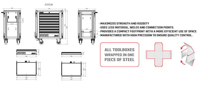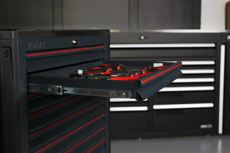 | The Sonic NEXT S9 toolbox is our recommended solution for technicians looking for a basic to intermediate toolset. What makes this toolbox our bestselling and recommended unit is not only its size in height, but its advantage of space saving design. This combination of overall size matched with its storage space allows this box to be the #1 choice within the range. |