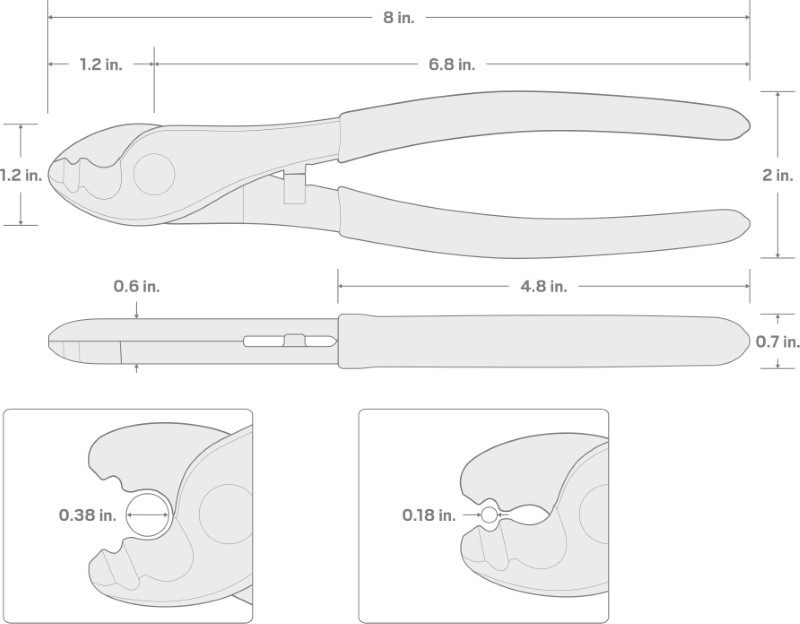 With curved blades made especially for round wires and cables, these cutting pliers cleanly shear a wide range of types and sizes, from tiny 40 gauge stranded to 16/3 service cord, even small diameter flexible tubing.