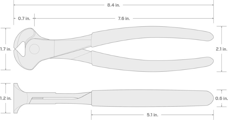 With broad round-profile jaws and relatively long handles, these end cutting pliers snip off or pry old nails, trim wires, and pull out staples.