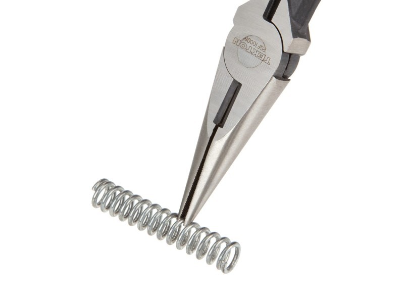 ![]() ![]() ![]() ![]() Stout, Strong Build Much thicker than our 7 in. Long Nose Pliers, these stout, strong pliers resist bending and flexing along their entire length to handle the toughest jobs. ![]() Fine Tipped Jaws Tapering to a fine tip just at the nose, the jaws are thick and wide at the base so they won't roll over each other or separate when you are aggressively pulling or twisting. ![]() Crosscut Teeth Oriented at 120 degrees to each other, the serrations are cut in two passes to form regularly-spaced, diamond-shaped teeth. ![]() Grip in All Directions Unlike straight serrations where the grip strength varies relative to tooth direction, a crosscut pattern grips evenly in any direction. ![]() Range of Tooth Types Smaller pliers with fine teeth are best for smaller precision applications and result in less marring of the work piece. Larger pliers with more aggressive teeth provide a stronger grip on less delicate parts. ![]() Clean Cut with Minimal Effort Machining the blades to an optimized 65-degree angle allows them to be strong yet sharp, producing a satisfyingly smooth, clean cut that requires minimal effort. ![]() INDUCTION HARDENED: After the full pliers have been heat treated, a secondary induction-heating process hardens just the blades to 58-64 HRC, making them extremely durable and able to cut tougher materials. KNIFE-TO-KNIFE: Comprised of two opposing blades that meet in the center, it is an extremely reliable cutting method, especially for harder wires. For a clean, low-effort cut, it requires a high level of manufacturing expertise to produce the near perfect alignment of the blades. When this cannot be consistently achieved, some manufacturers may turn to a less effective knife-and-anvil design (one knife blade, one blunted blade) that doesn't require such precise alignment. Lean and Practical Grips Single-layer vinyl grips offer a bit of comfortable cushion and provide a smooth, yet nonslip surface. They're slim, not thick and bulky, so they stay out of the way when space is tight and are always easy to handle, even with gloves on. ![]() Non-absorbing and resistant to most common fuels, lubricants, and cleaners. Won't get soft or sticky over time. Easy to wipe clean. |