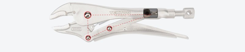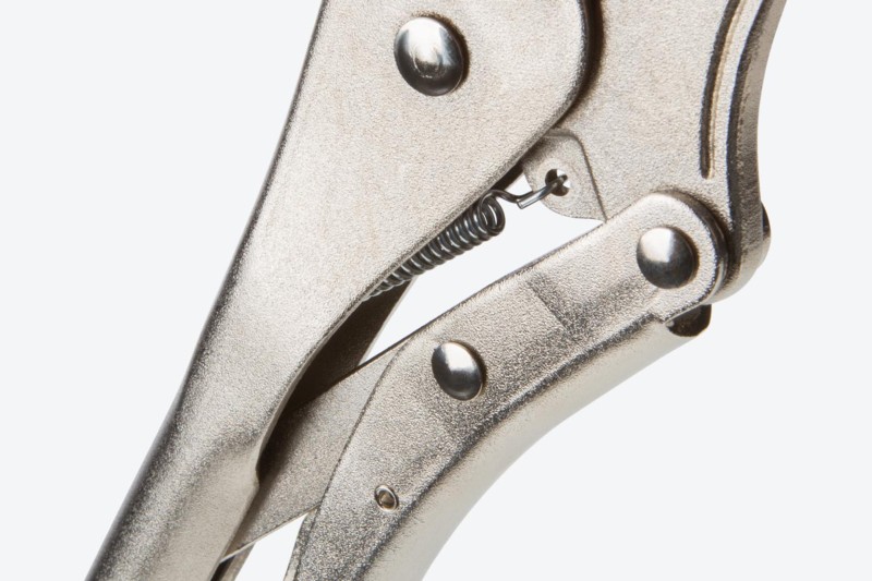 The jaws are designed to encircle pipes, round fittings, and hex nuts and dig in with sharp teeth set at opposing angles. As the pliers close, the bottom jaw shifts forward setting the teeth into a strong directional bite, creating even higher clamping pressure. Pull-to-Release Lever Easily set, release, and reposition the clamp with one hand and with more control than a traditional pinch-style lever. Large Adjustment Knob The adjustment knob is knurled and round to provide grip for making adjustments even when you’re wearing gloves or have slippery hands. ![]() Tensioning Through-Hole Get extra leverage and fine-tune your clamping force by inserting a screwdriver or hex key into the through-hole to create a T-handle. ![]() High-Strength Rivets Three main rivets work together to make up the 4-point mechanical structure of the pliers and give it its strength. To make sure ours can withstand high shear forces, the rivets are made from tough 4135 chromium molybdenum steel. ![]() Strong Jaws and Teeth The jaws are made from 4140 chromium molybdenum steel, an alloy that offers toughness, machinability, and corrosion resistance. The teeth are hardened to 45-50 HRC and should not chip or strip even on fasteners up to Grade 8 or Class 12.9. ![]() Durable Nickel-Plated Finish Before assembly, the individual jaw, handle, lever, and crossbar parts are shot-peened to create smooth, consistent surfaces. The final finish is a durable nickel plating that protects against corrosion. ![]() |