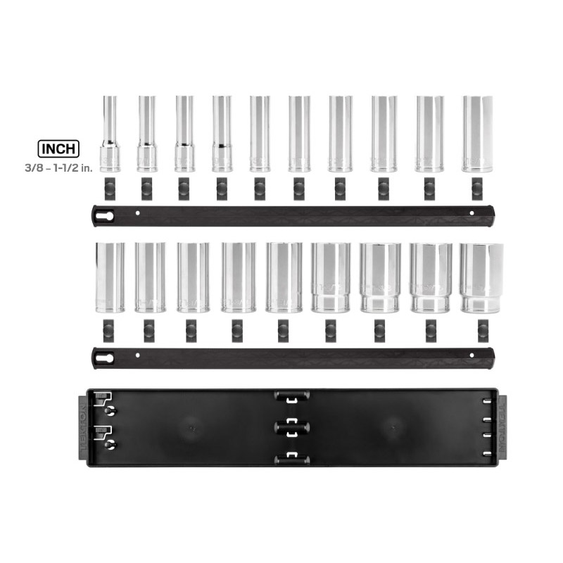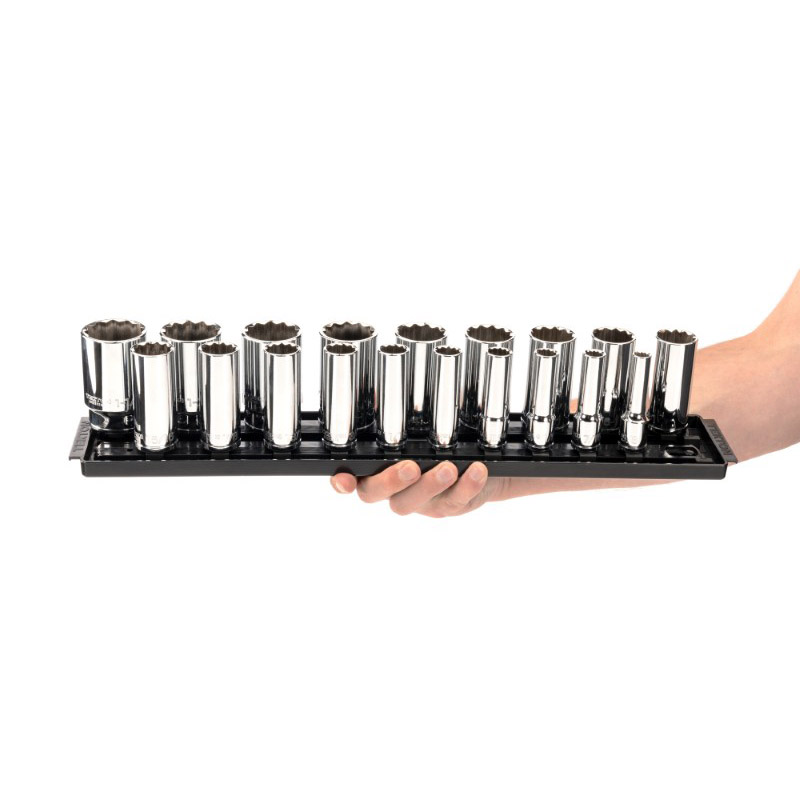 Tekton 1/2 Inch Drive Deep 12-Point Socket Set with Rails and Tray - 19-Piece (3/8 - 1-1/2 in.)