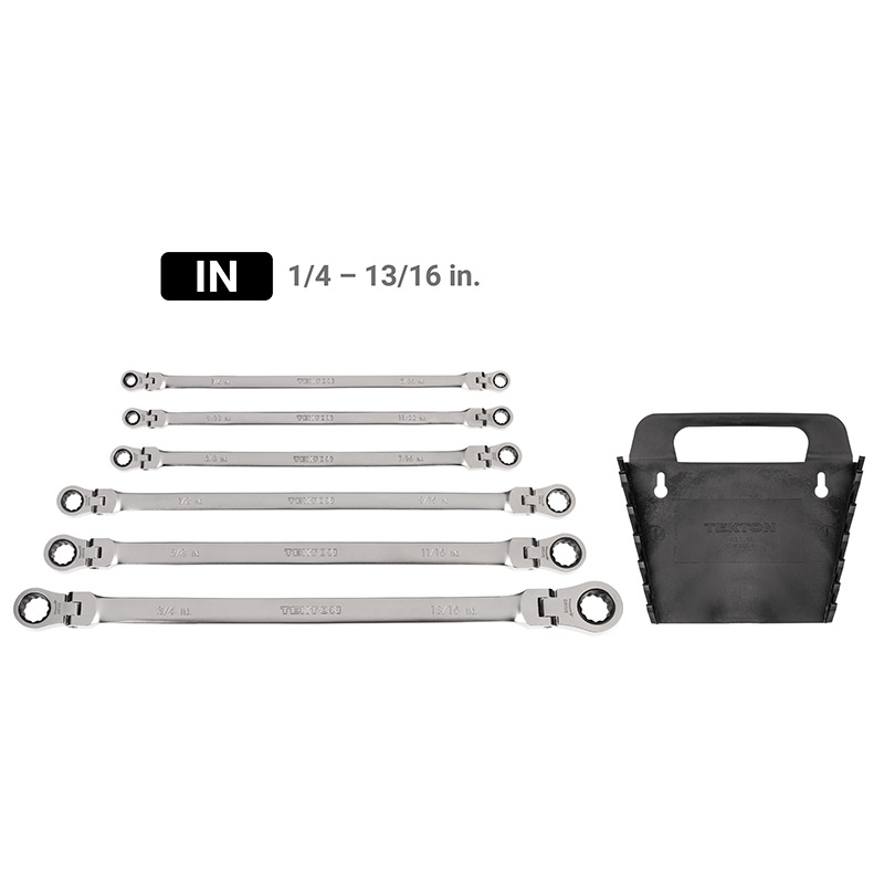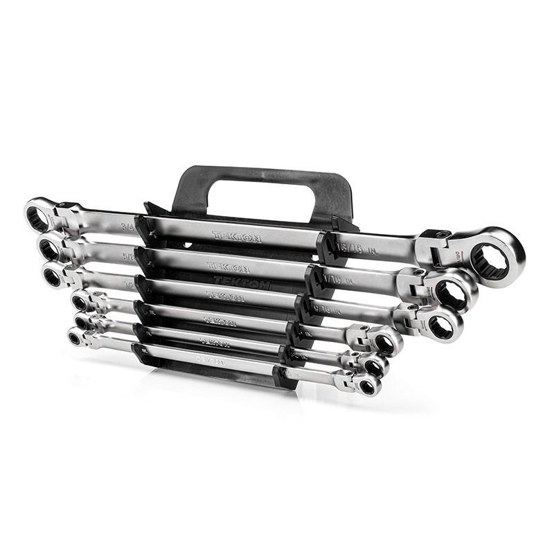 Tekton Long Flex Head 12-Point Ratcheting Box End Wrench Set With Holder - 6 Piece Set