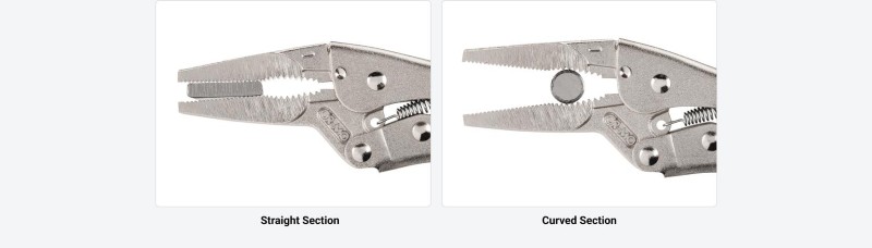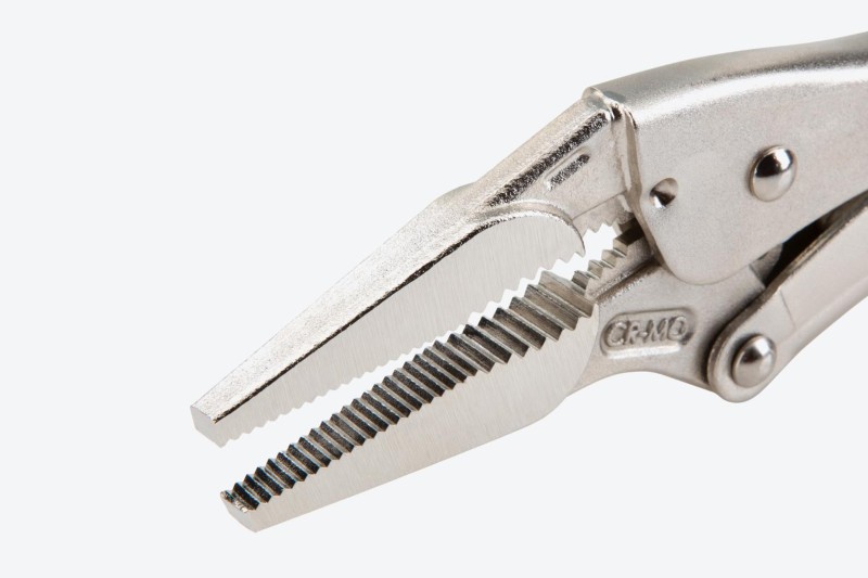 Designed to reach into tight spaces, the long, tapered straight section clamps flat stock, L-angle, and sheet metal in position for welding or assembly. Its shallow, regularly-spaced teeth provide an evenly distributed grip on smooth, flat surfaces. ![]() Pull-to-Release Lever Easily set, release, and reposition the clamp with one hand and with more control than a traditional pinch-style lever. Large Adjustment Knob The adjustment knob is knurled and round to provide grip for making adjustments even when you’re wearing gloves or have slippery hands. ![]() Tensioning Through-Hole Get extra leverage and fine-tune your clamping force by inserting a screwdriver or hex key into the through-hole to create a T-handle. ![]() High-Strength Rivets Three main rivets work together to make up the 4-point mechanical structure of the pliers and give it its strength. To make sure ours can withstand high shear forces, the rivets are made from tough 4135 chromium molybdenum steel. ![]() Strong Jaws and Teeth The jaws are made from 4140 chromium molybdenum steel, an alloy that offers toughness, machinability, and corrosion resistance. The teeth are hardened to 45-50 HRC and should not chip or strip even on fasteners up to Grade 8 or Class 12.9. ![]() Durable Nickel-Plated Finish Before assembly, the individual jaw, handle, lever, and crossbar parts are shot-peened to create smooth, consistent surfaces. The final finish is a durable nickel plating that protects against corrosion. ![]() |
