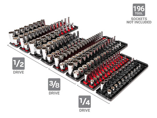 Tekton 1/4, 3/8, 1/2 Inch Drive Socket Rail and Tray Set (196-Tool)