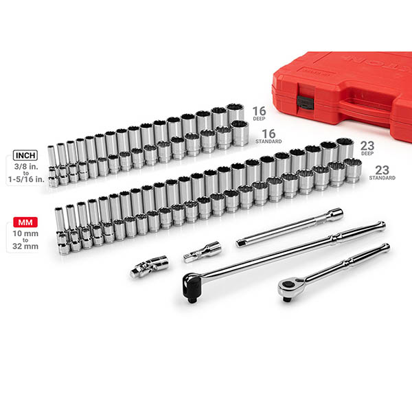 Tekton 3/8 Inch Drive 12-Point Socket and Ratchet Set with Case - 73-Piece (1/4-1 in., 6-24 mm)