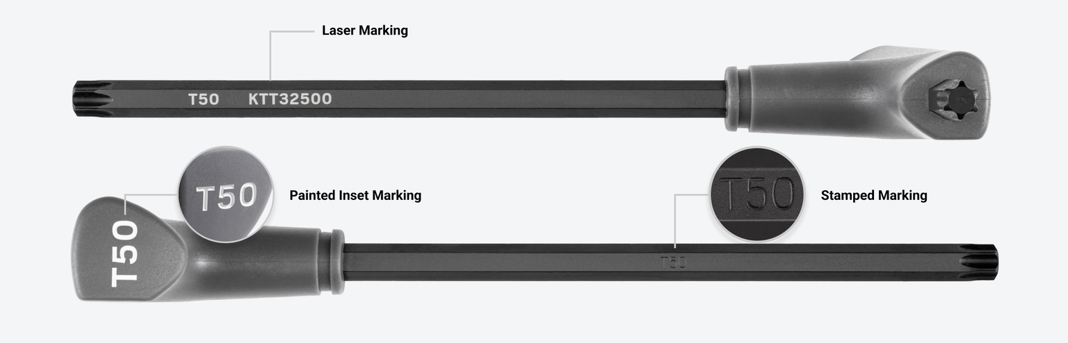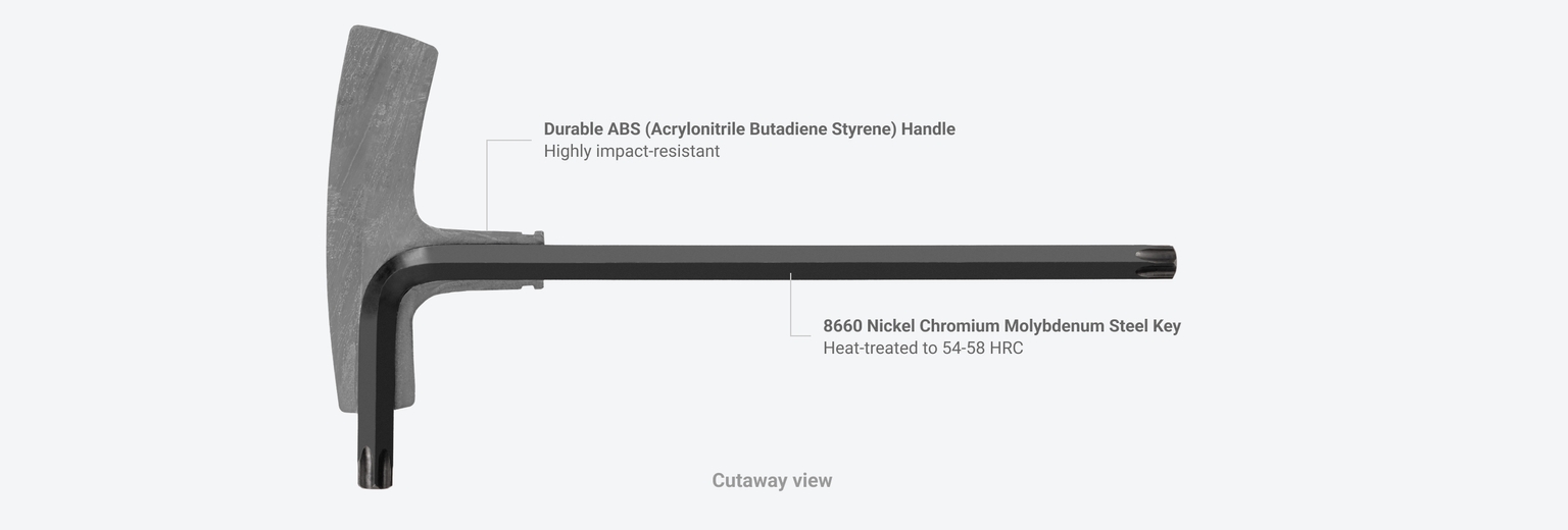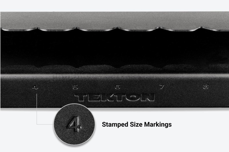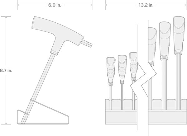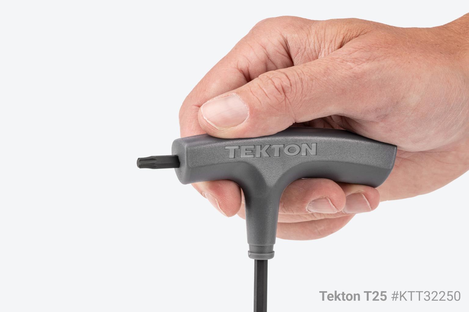 Designed for Torque and Speed ![]() Comfortable, Versatile Handle Design The handle's large, contoured shape is designed to fit your hand and make it comfortable to spin the tool and apply torque from various positions. ![]() Precise Tip Geometry The star-shaped ends have 6-lobes that are machined to precise tolerances for an exact, high-torque fit with Torx® fasteners that resists camming out. The tips are slightly chamfered to help the keys slide easily into fasteners and reduce wear. ![]() Materials and FinishesMolded Handle and Steel KeyOur T-handle keys are made the same way as our L-keys with the addition of a molded handle that makes applying torque easier and more comfortable. ![]() Corrosion-Resistant Finish We coat all of our keys with a durable manganese phosphate finish that’s resistant to corrosion. ![]() Clear Markings With the exception of the smallest sizes, Tekton T-handle sizes are marked in three ways—a high-visibility laser marking, a stamped marking, and a painted inset marking that can't wear off. ![]() Organization FeaturesEasy-to-Use Key StandOur custom T-handle stand is designed to guide each key into its slot, making it easy to return your tools to their places. Slots Matched to Hex Geometry We coat all of our keys with a durable manganese phosphate finish that’s resistant to corrosion. ![]() Quick Size Identification With the exception of the smallest sizes, Tekton T-handle sizes are marked in three ways—a high-visibility laser marking, a stamped marking, and a painted inset marking that can't wear off. ![]() Mounts to Bench Top Three holes on the bottom of the stand allow for mounting to a bench top. ![]() 18 Gauge Steel Stand ![]() |