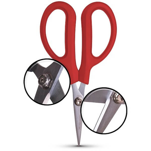 High quality scissors for cutting Kevlar thread. These scissors are specially designed for cutting Kevlar material; Kevlar thread in particular. One blade is micro-serrated along the whole edge. The blades are made of high carbon alloy steel with Molydenum and Vanadium edge 60~62, cutting edge hardness HV1200. The handles are especially designed for firm grip and to ease repetitive cutting action. |