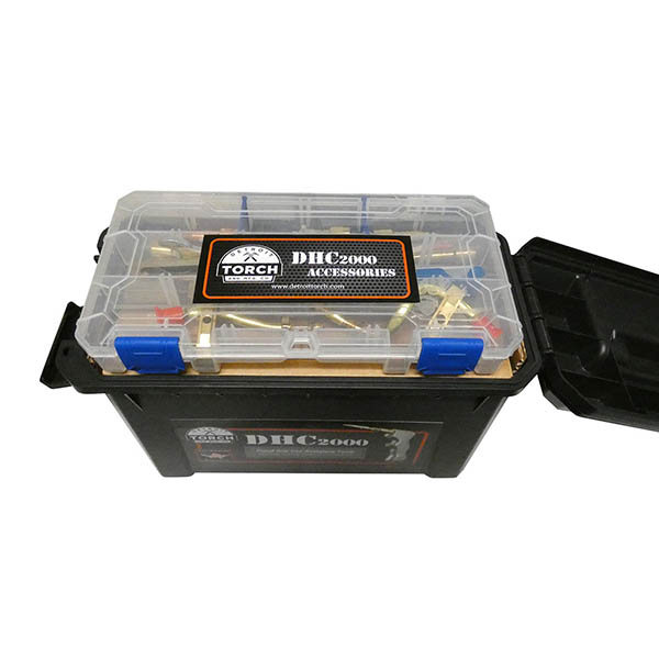 Standard Welding System contains the DHC2000 Welding Torch, #0, #0.5, #1, #2, #3 and Copper Cutting Tip, undercutter, overcutter with guide rail attachment, one set of check valves, a tip cleaner set, wrench, DVD, and instructional manual |