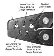 Crimp tool works with all Seal-All Terminals and seals. Its compact, low-cost parallel jaw design eliminates terminal rocking. Seal-All Crimp Tool MANF P/N WHTSACT P/N 11-06592 |