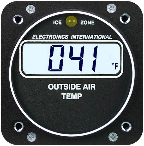 Electronics International’s A-1 instrument provides pilots with the precision and stability needed in order to accurately monitor Outside Air Temperature while in-flight. All gauges are accurate to 1% and are FAA-approved under STC No.1626NM. Furnished complete with all probes and leads. Ice Warning Not only will Electronics International’s A-1 display Outside Air Temp with a stable, one-degree (Fahrenheit) resolution, it also comes complete with an “Ice Zone” light that alerts the pilot when the Outside Air Temperature could possibly contribute to ice forming in the aircraft carburetor. |