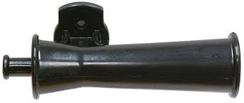 Black molded plastic venturi mounts on fuselage bottom and produces required suction to horn and outlet tubes for fluid ejection. |